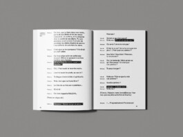 Daniil Charms (Daniil Kharms) is an absurdist poet, writer and playwright. I've made a book full of his poems, most of them weirder and weirder, in each poem I highlight in black the strangest phrases, over the course of the book the pages are filled with more and more of these highlights.